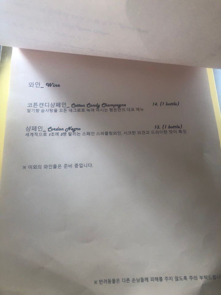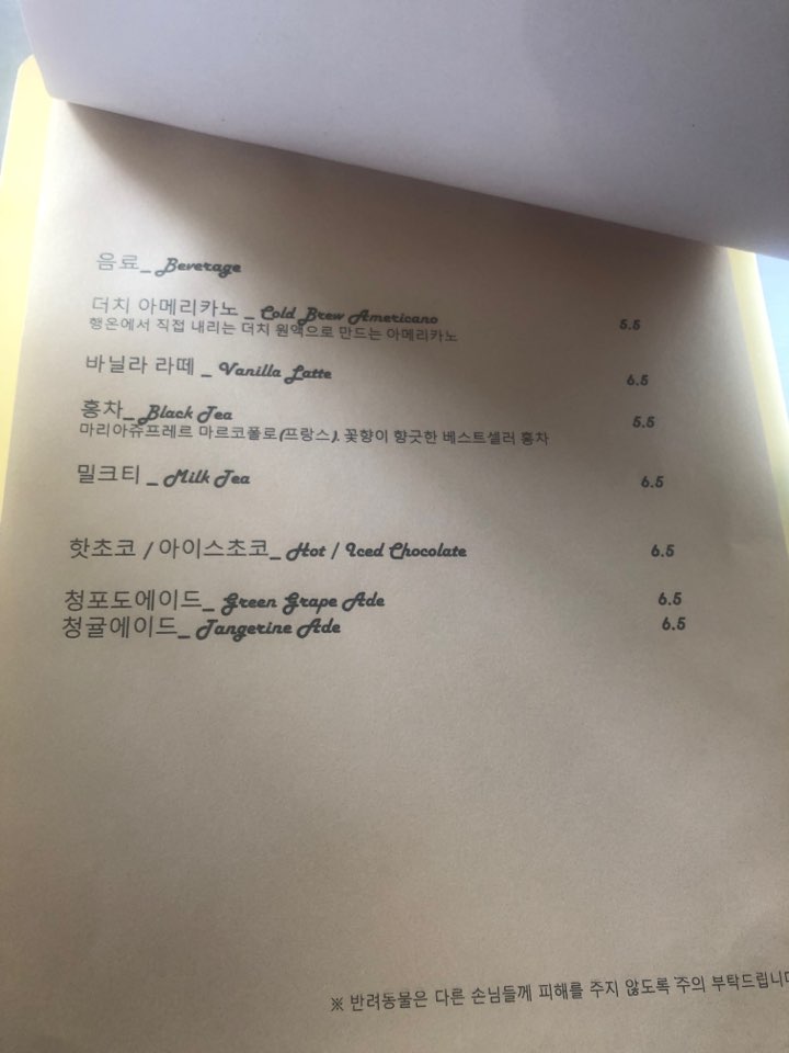 음료는 더치 아메리카노, 홍차, 밀크티, 바닐라라떼, 샴페인, 솜사탕 샴페인 중 한 가지를 고릅니다. 이외에도 핫초코, 아이스초코 청포도 에이드, 청귤 에이드가 준비되어 있습니다.
