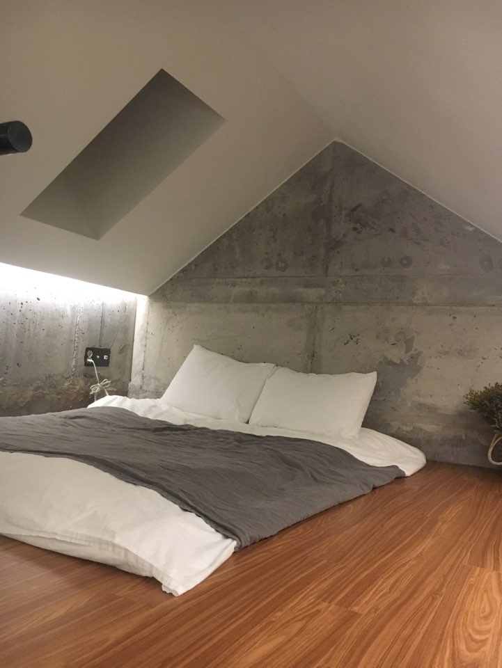 화장실 거울부터 감성 느낌이 느껴지지 않나요? 2번 룸은 복층식으로 되어있고, 계단이 가파르기 때문에 조심해야겠더라고요. 다이빙 맛 숙소를 선택한 첫 번째 이유. 숙소 내부가 제가 좋아하는 감성적인 느낌에 천장이 뚫려있어 별을 보기 좋다고 하더라고요.