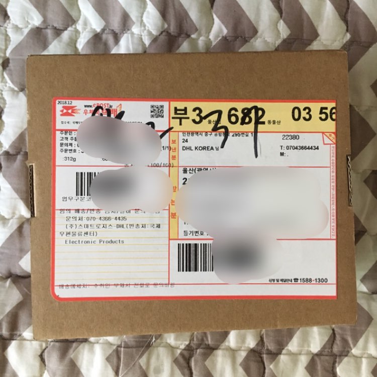 5월3일까지 배송될 예정이라고해서 3일에 배송이 될줄알고 전날인 5월2일 설마 오늘오겠어 하면서 멀리 타지역으로 놀러갔는데 아니나다를까 오늘 배송이된다고 문자가 오더라고요.... DHL 택배로 해외에서 이동을하고 국내에 도착하면 다른 운송업체(우체국택배)로 이송이되더라고요. 택배가 하루 지연될경우를 대비하여 5월3일까지 배송될예정이라고 했나봅니다.