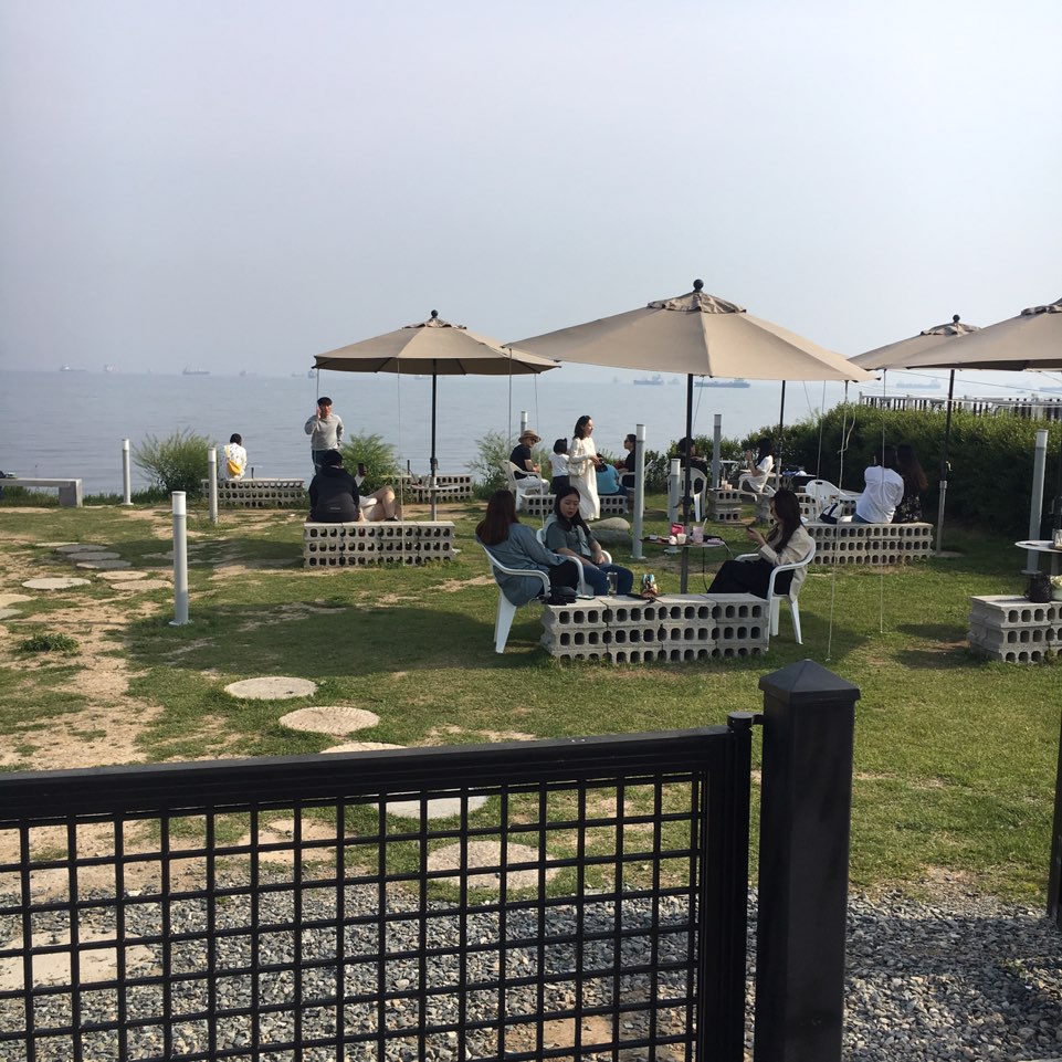 카페 내부에서 바라보는 밖의 풍경은 정말 아름다웠지만.. 막상 야외석에 앉게 되면 미세먼지 때문에 푸른 바다와 맑은 하늘을 볼 수가 없어 답답하기만 합니다. 날씨가 맑고 미세먼지가 덜한 날 방문하면 정말 예쁠 것 같더라고요.