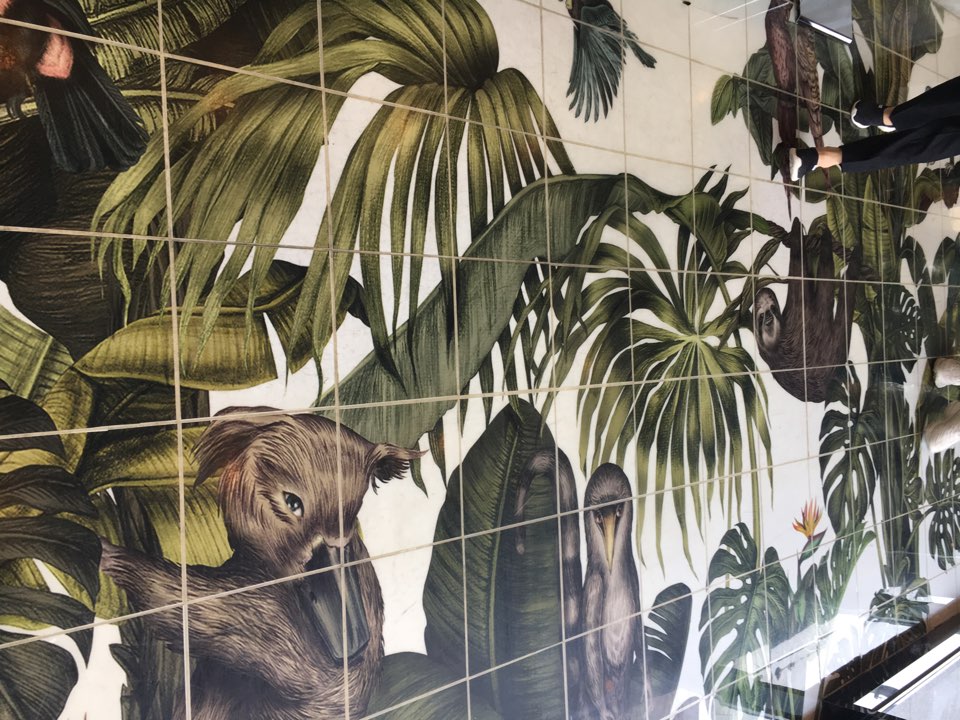 그리고 두 번째로 독특 해던 점이 1층 바닥이 그림이더라고요? 타일 형식으로 된 바닥이었는데 위와 같이 그림이 그려져 있는 것을 보니 신기했습니다. 보통 벽면에 그림이 있는 곳이 대부분인데 여긴 바닥에 그림을 새겨 넣었더라고요.