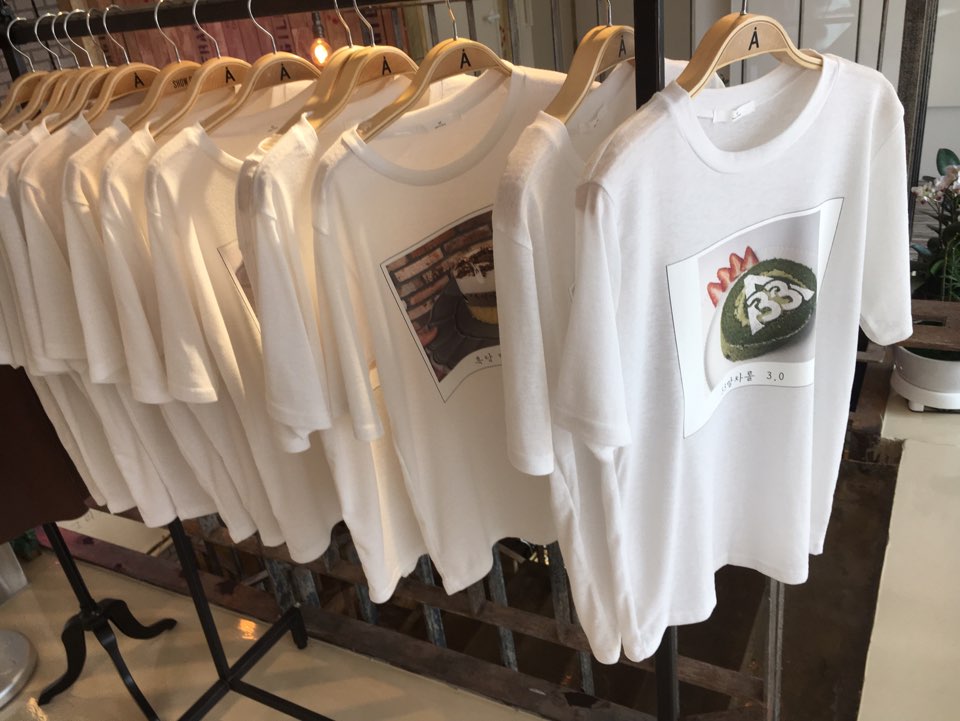 그리고 SNS에서 보던 메뉴판. 메뉴판이 셔츠 위에 프린팅 되어있고, 디저트 메뉴는 티셔츠 위에 프린팅 되어있었습니다..ㅋㅋㅋㅋㅋㅋ 처음에 디저트를 먹고 싶은데 메뉴판에 디저트가 안 보여서 직원분께 물어보니 행거에 있다고.... 당황했던 기억이 아직까지 생생하네요.
