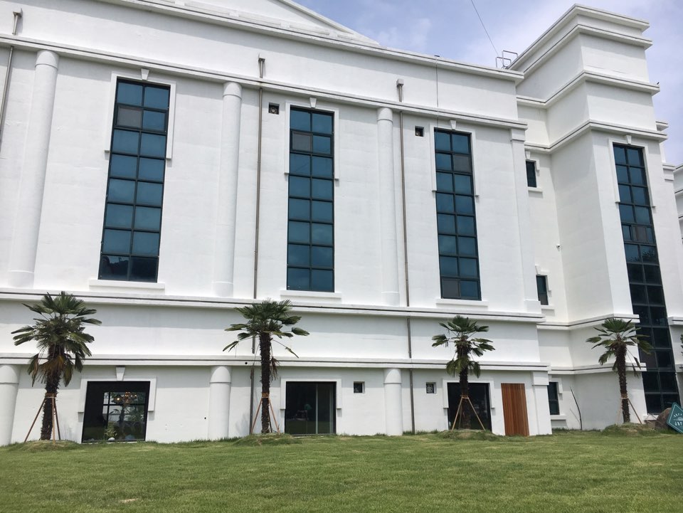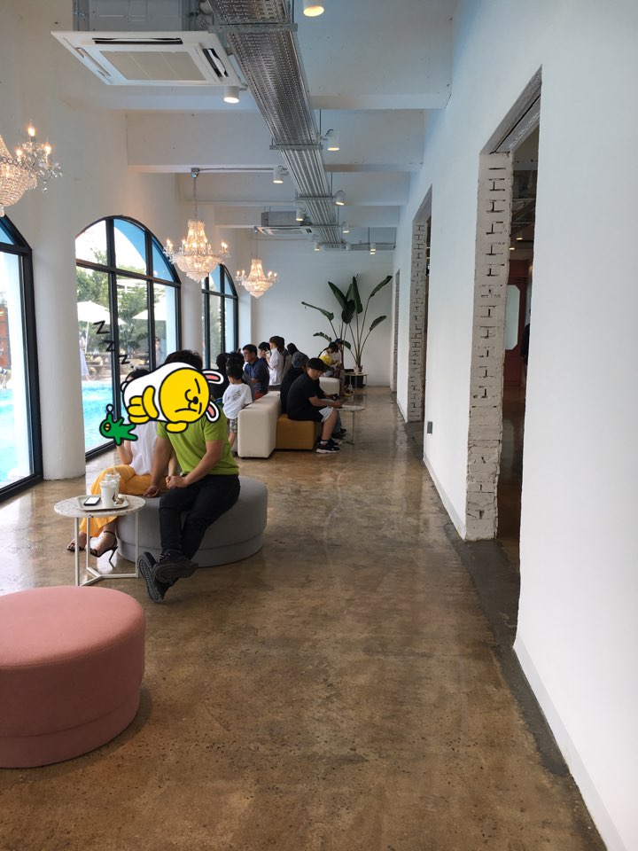 본관은 수영장을 바라보며 시원한 느낌으로 차를 마실 수 있는 공간이있고, 푸릇푸릇한 식물을 보며 시원하게 마실수있는 공간이 나뉘어있었습니다. 2층은 아직 공사 중이라 못 올라가 보지만... 건물 밖에서 봤을 때 하얀 그랜드 피아노가 보이더라고요.