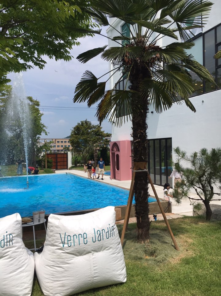 본관 뒤편으로 가면 빈백 의자들이 놓여있는데 지금 가면 날씨가 너무너무 더워서 오래 앉아있기는 힘들고 사진만 잠깐 찍고 오기 좋더라고요. 빈백 의자에 앉고 싶은 분들은 수영장 근처 빈백에 앉는 것을 추천드려요.