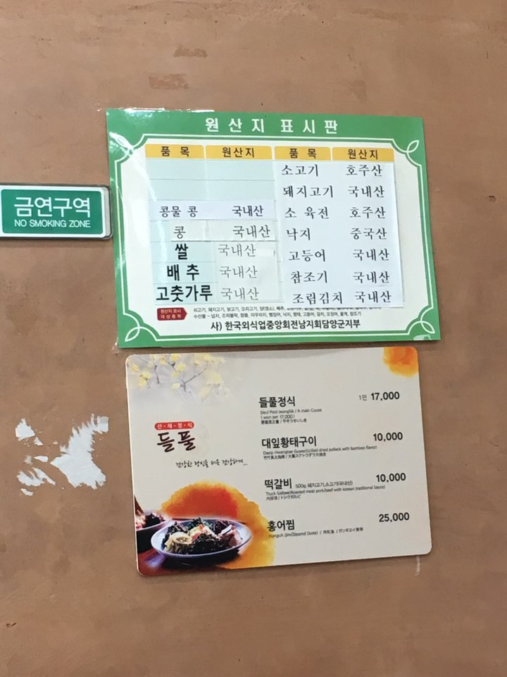 둘레길을 한참 돌고 저녁시간이되어 들풀에 방문하였습니다. 길가 한복판에 있는 줄 알았는데 골목 저 안쪽에 위 치행 있더라고요.