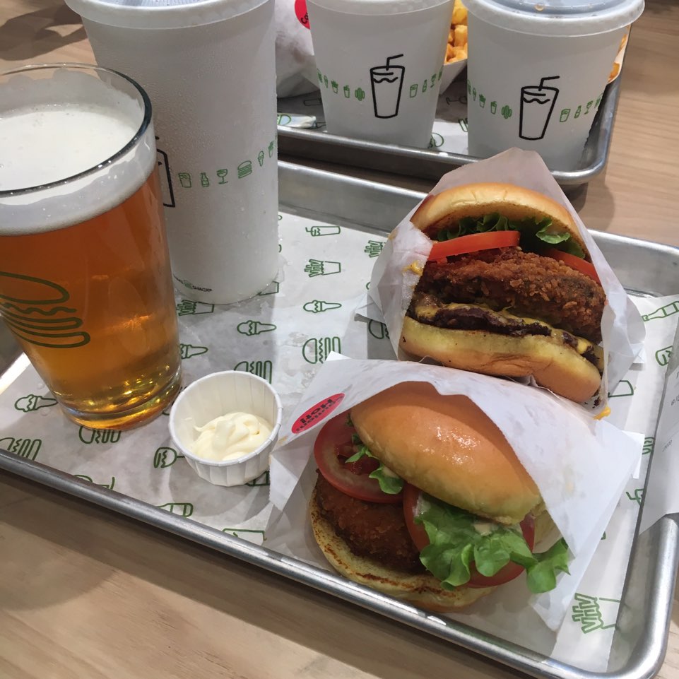 쉑쉑버거에서 슈룸버거, 쉑스택버거, 맥주, 라지콜라를 주문하였습니다. 참고로 감자튀김 소스는 마요네즈밖에 없다는 사실.... 하지만 느끼하지않고 맛있었는데 사람마다 입맛이 다르기때문에 ..
