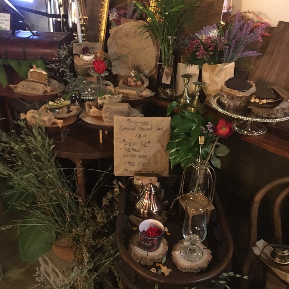 장식들이 많아서 몰랐는데 카운터 옆을 자세히 보면 디저트들도 준비되어있었습니다. 밥을 먹고 바로 오지 않았다면 함께 먹었을 텐데.. 아쉬운 마음..