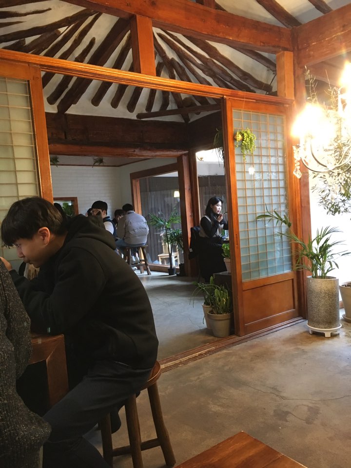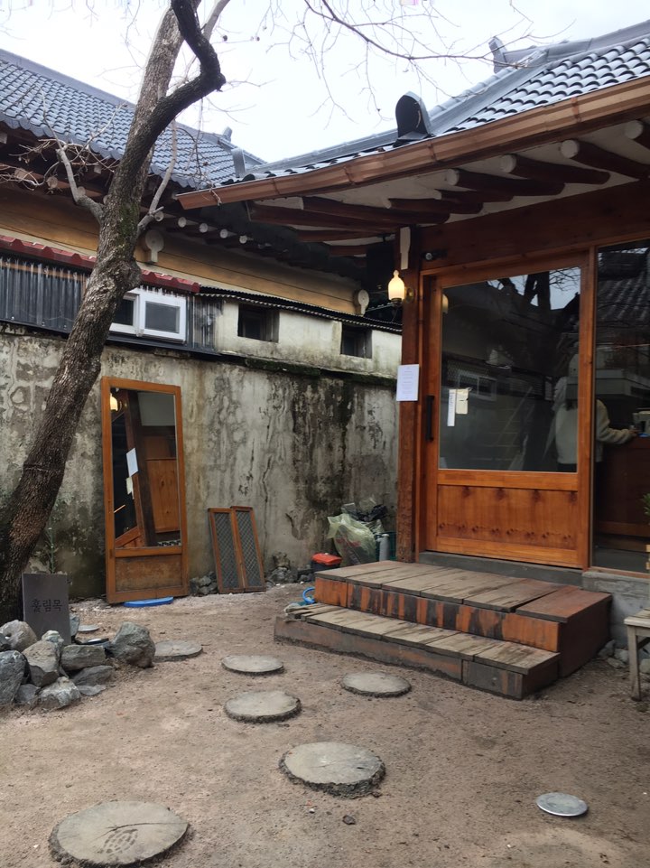 점심을 먹고 디저트로 수플레 팬케이크를 먹으러 훌림목으로 들어가는 순간 깜짝 놀랐습니다. 정말 추운 날이었는데 실내가 만석이라 훌림목 마당에서 많은 분들이 기다리고 계셨습니다.