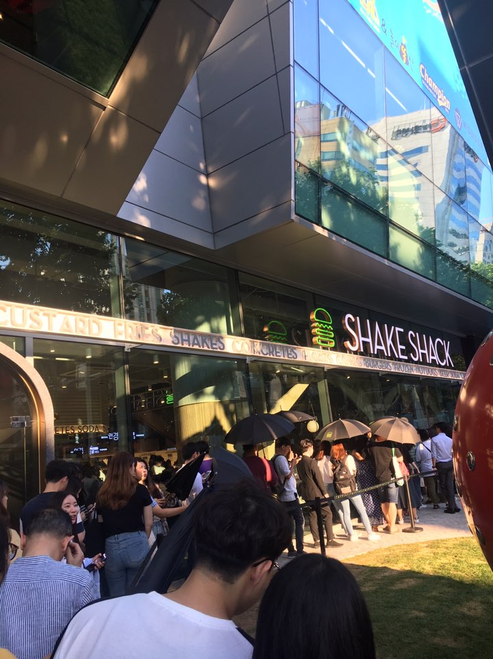 쉑쉑버거 서울에만있기도하고, 햄버거중에 가장 맛있다고 소문이자자해서 얼마나 맛있나 궁금해서 오픈당일날 아침은 너무길것같아 가지않고 저녁쯤에 갔는데도 줄이 길더라고요.