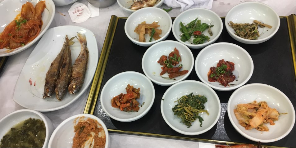 어느 정도 음식을 먹고 나면 밥과 된장국, 조기와 밑반찬 8가지를 가져다주십니다. 정말 한정식이라는 식당답게 음식 가짓수도 많고, 잘되어있더라고요.