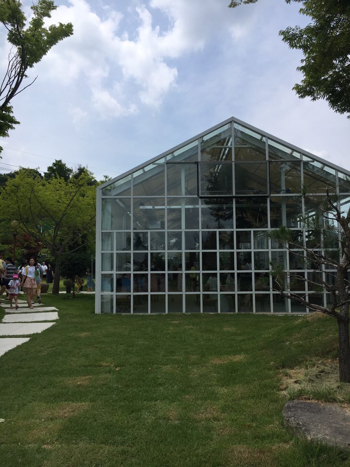 온실 안에는 통유리와 정말 온실 안에 있는듯한 느낌을 주는 나무들.. 날씨가 덥지만 않으면 천장도 오픈되어있겠지만 햇볕이 따가운 여름이라 닫아놓았더라고요. 다음엔 날씨가 덥지 않은 날 천장이 모두 오픈되어있을 때 다시 한번 방문해보고 싶었습니다.