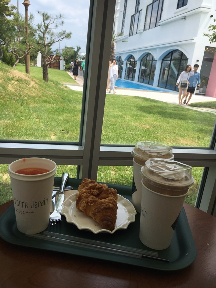 본관은 수영장을 바라보며 시원한 느낌으로 차를 마실 수 있는 공간이있고, 푸릇푸릇한 식물을 보며 시원하게 마실수있는 공간이 나뉘어있었습니다. 2층은 아직 공사 중이라 못 올라가 보지만... 건물 밖에서 봤을 때 하얀 그랜드 피아노가 보이더라고요.