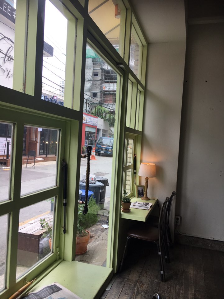 한쪽 벽면에는 혼자 앉을수도있고, 나란히 앉을수도있는 자리도 있었습니다. 이곳 벽면이 참 마음에들었는데 여기서 사진을 찍기가 참 힘들더라고요... 테이블간격이 좁아서...^^;;