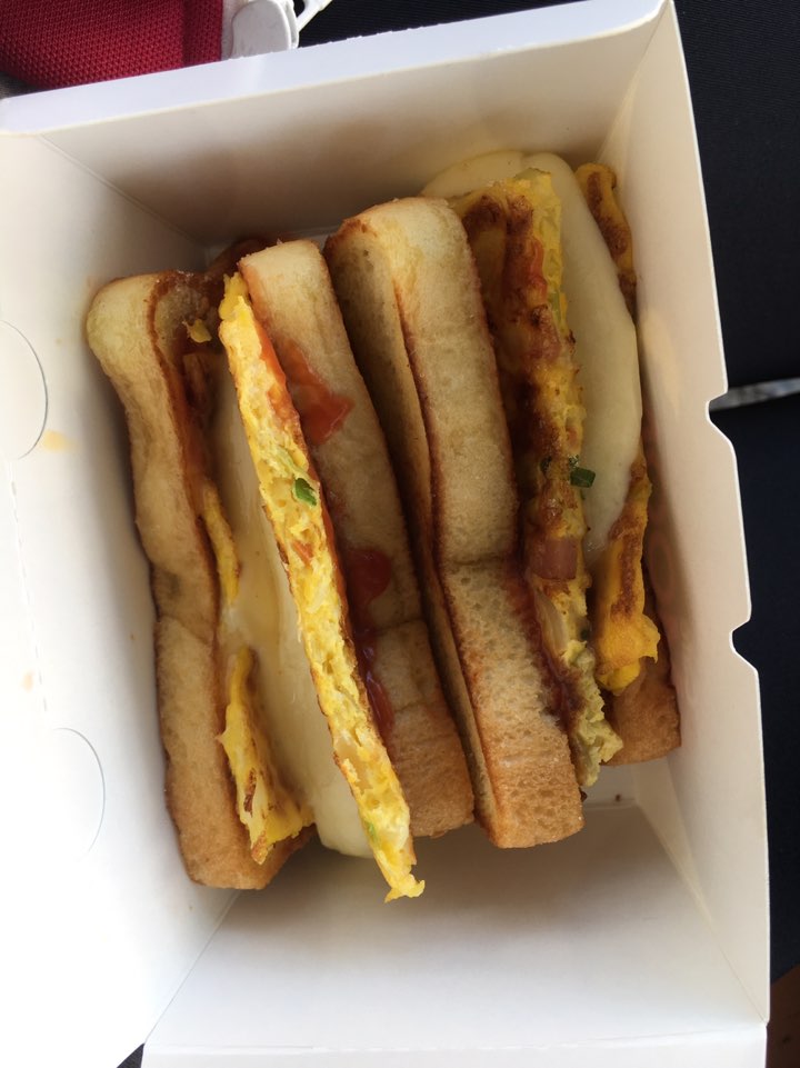 맛이 가물가물해서 그때 내가 잘못 먹었나 싶어 다시 한번 도전해보았지만 여전히 이 토스트를 한 시간 넘게 기다려서 먹을 정도로 맛있는지 잘 모르겠습니다.. 버터에 구운 식빵에 케첩, 계란 단지, 모차렐라 치즈가 끝이에요. 집에서 만들어먹어도 될 것 같을 정도로 특별한 비법이 있는 것 같지는 않은 문 토스트