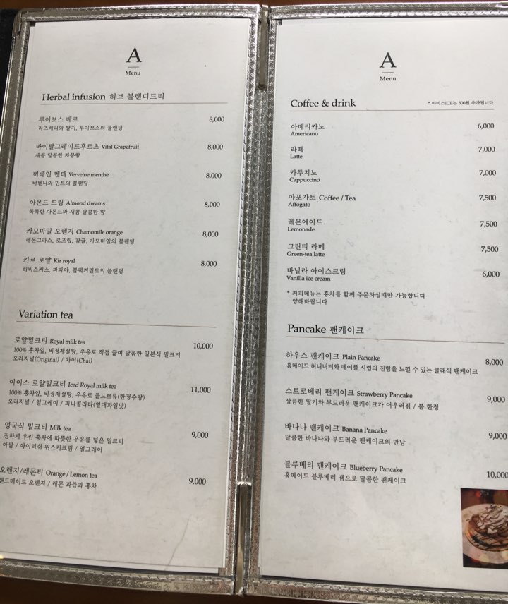 오후의홍차 카페메뉴들은 대부분 티 메뉴들이 많더라구요. 커피메뉴는 홍차와 함께 주문할때만 가능하다고하니 이점또한 참고해주시기바랍니다.