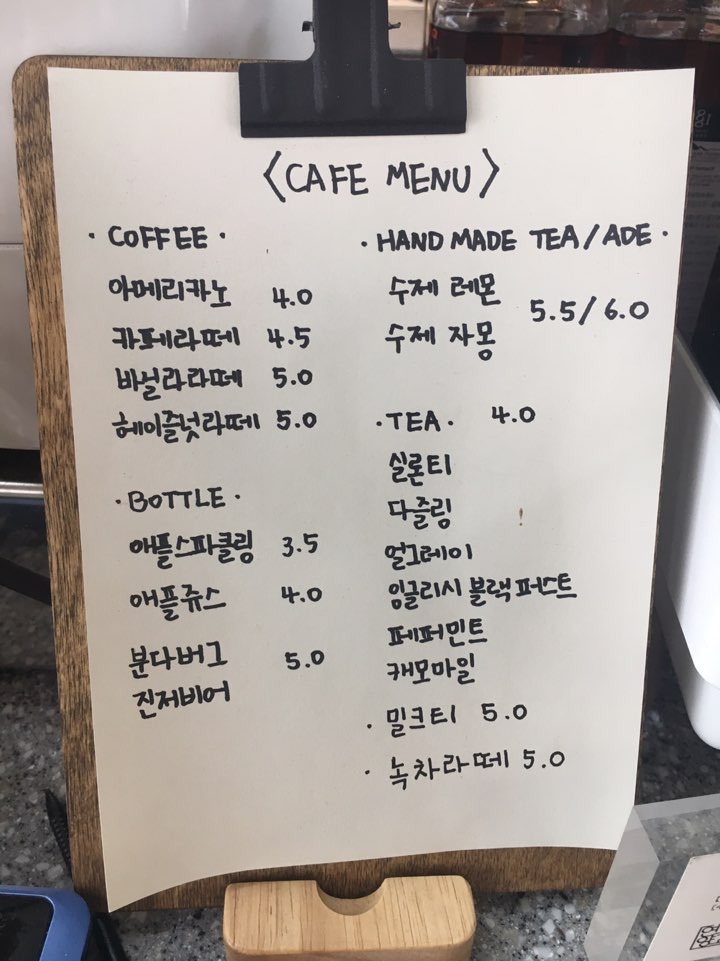 카페 메뉴는 커피메뉴와 병음료, 티와 에이드 그리고 가장 인기있는 디저트들이 진열되어있는데 이 진열되어있는 냉장고를 깜빡했습니다 .... ㅠㅠㅠㅠㅠ