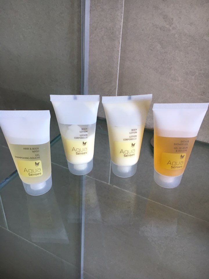 샤워장 안에는 헤어, 바디 겸용 바디&헤어 워시와 바디로션 두 개, 샤워젤이 준비되어있습니다.