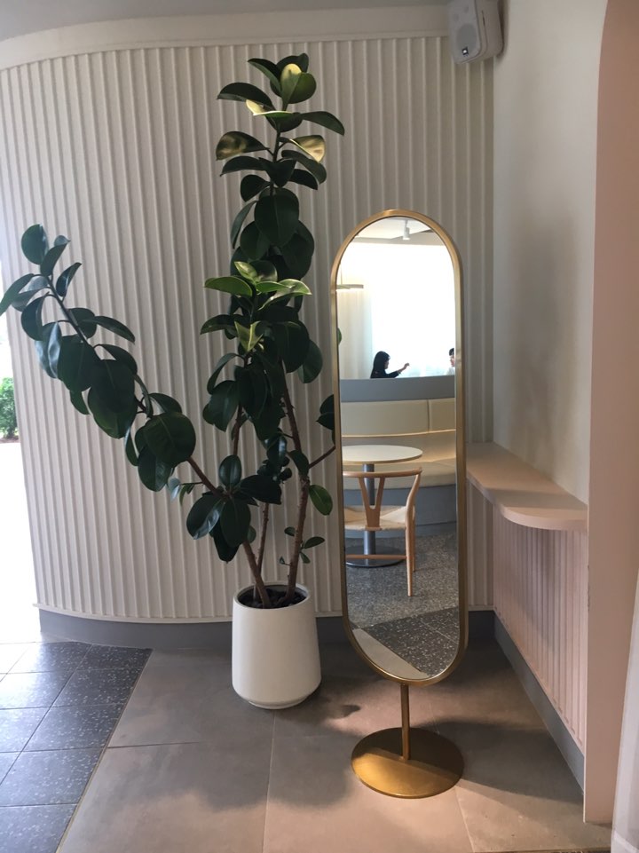 가게 한쪽에는 큰 화분과 예쁜 전신 거울이 놓여있습니다. 화분과 거울 딱 보면 이쁜데 셀카를 찍으러 거울 안을 들여다보면 배경이 생각보다는 별로더라고요... 뒤에 앉아있는 사람들도 다 나옵니다.. ㅠㅠ