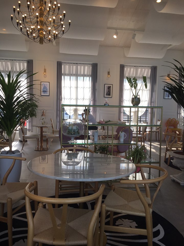 카페 내부도 정말 예쁘지만 내부를 지나 바다 뷰 쪽 테라스도 정말 분위기가 좋았습니다. 저는 해 질 녘쯤에 방문해서 조금 덜 예쁘게 찍혔는데 점심쯤에 방문하거나 조명이 달려있어 저녁에 방문하면 정말 이쁠 것 같더라고요.