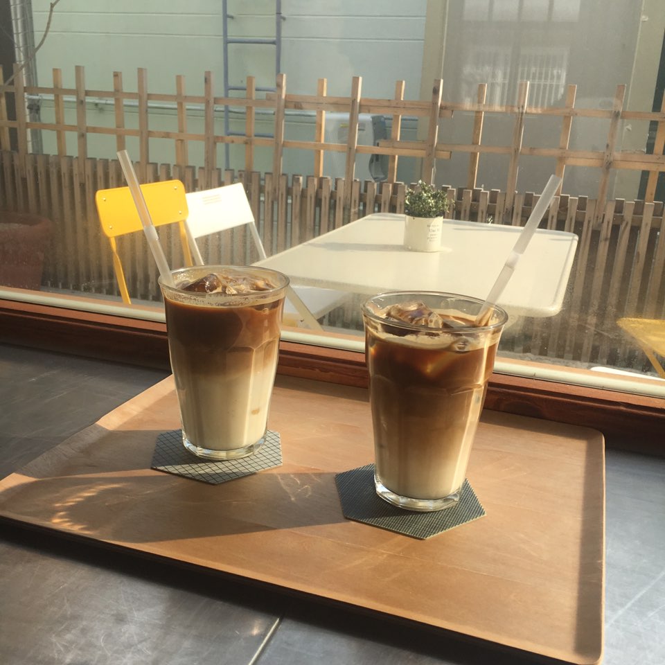 다락방(?) 같은 2층을 올라오면 바로 보이는 이곳 창문 너머를 구경하며 커피를 마실 수 있는 햇살 맛집이라고 많이 불리더라고요. 하지만 창문 너머에는 시멘트밖에 보이지 않아 조금 아쉬웠습니다.